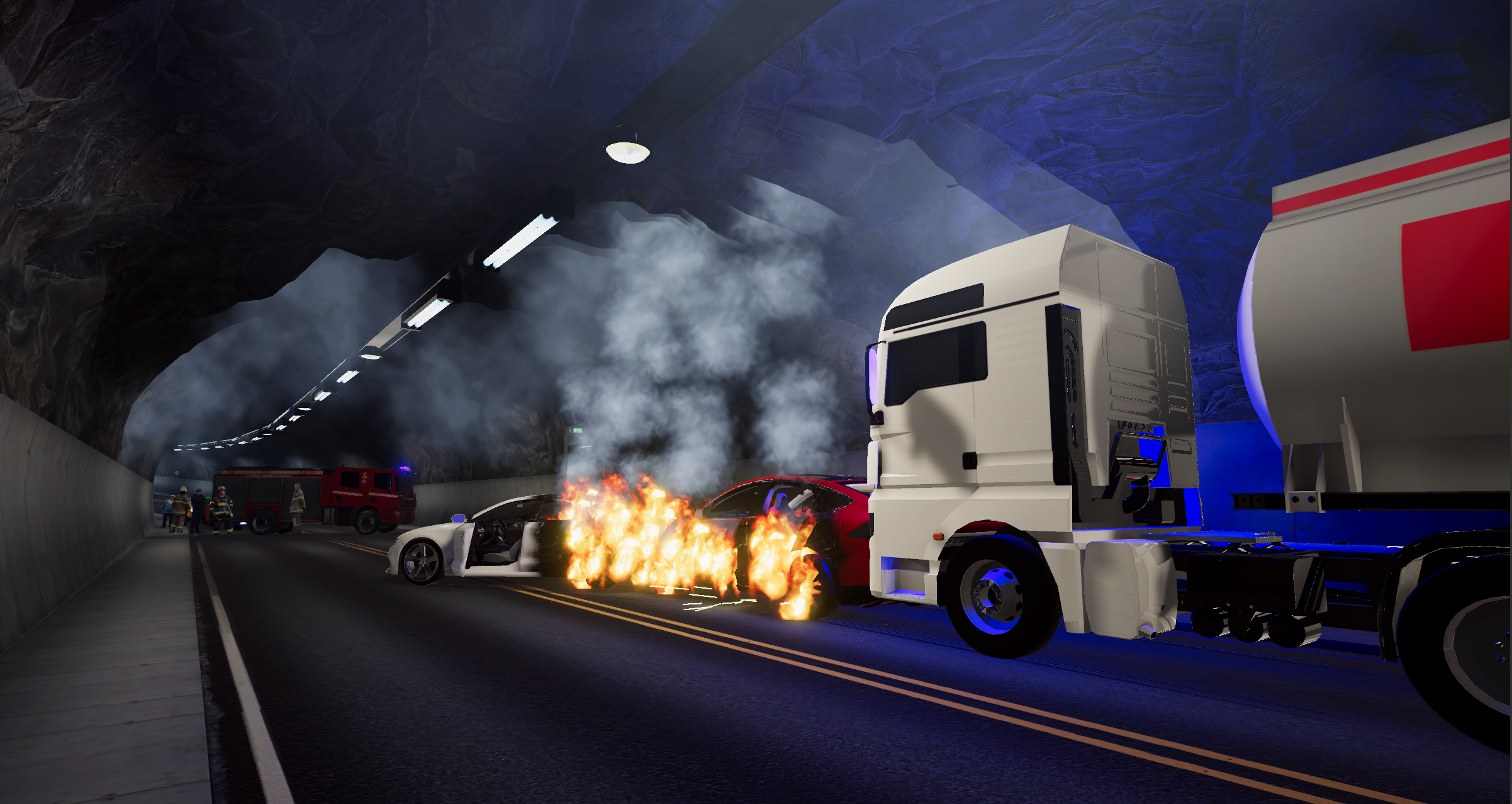 Flaim Trainer is an advanced firefighter training solution that integrates virtual reality with a suite of haptic technologies, including a force-feedback hose, breathing apparatus, and heat suit. It enables firefighters to safely train for dangerous, rare, or environmentally restricted scenarios - situations that would otherwise be too costly, resource-intensive, or impossible to reproduce.